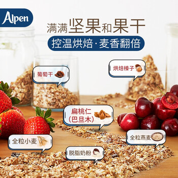 英国进口 维多麦 Weetabix水果麦片 欧倍 Alpen 瑞士风味营养即食谷物燕麦片(含干果坚果未加糖)550g礼盒